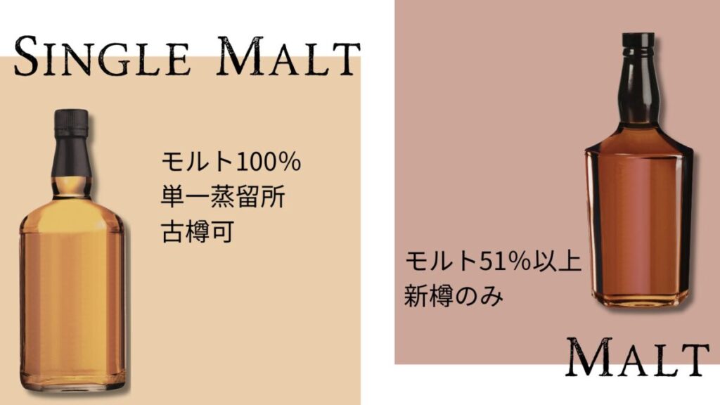 そのため、モルトウイスキーはバーボン寄りの味わいにもなり、シングルモルトはスコッチ寄りの味わいという違いが生まれます。